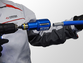 (注) 万が一、40N・m 以上の出力があるドライバーをご使用の場合にはゆっくりと回転させて、ケーブル導体にアルミらくらくソケットの刃が当たらないように注意してお使い下さい。